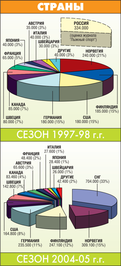 С тех пор «Л.С.» ещё несколько раз публиковал статистические данные с оценкой ёмкости мирового рынка беговых лыж и обуви (более подробную информацию на эту тему можно почерпнуть в «Л.С.» №10, 14, 18, 24, 25).