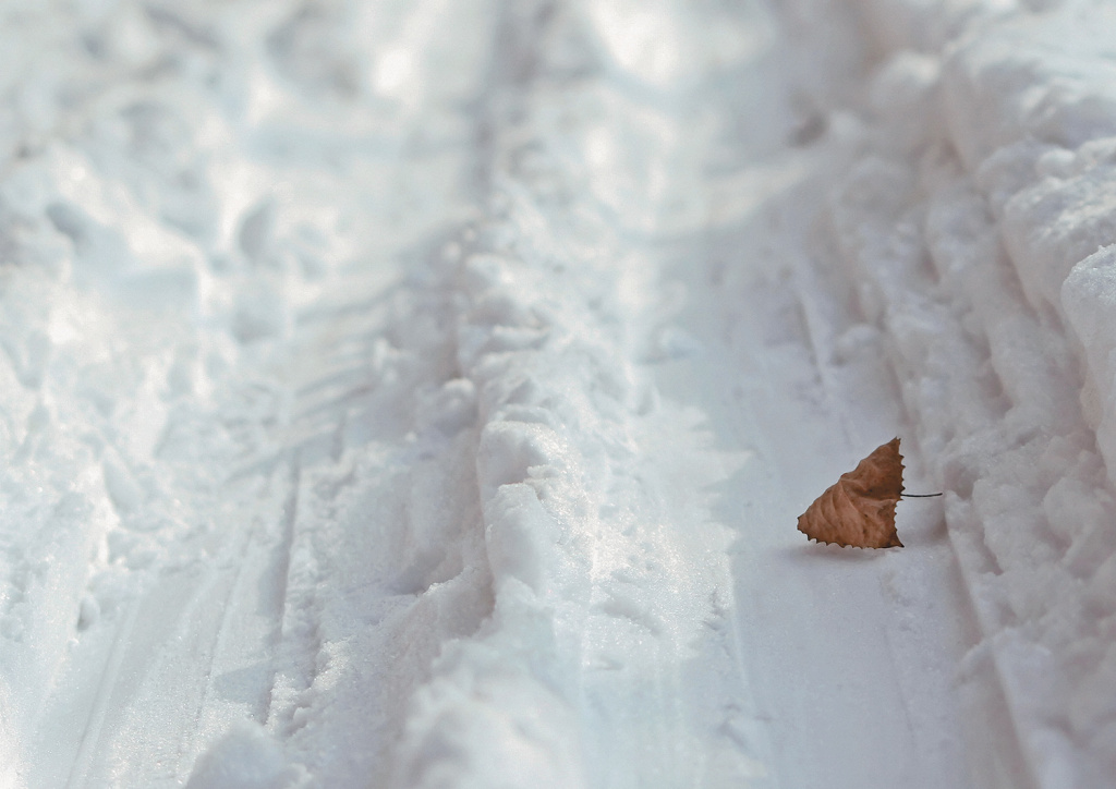 В сознании обычного человека, далёкого от лыжного спорта, слово «ЛЫЖНЯ» ассоциируется именно так. Для лыжника в слове «лыжня» заключена вся его жизнь. Это часы, складывающиеся в дни, недели, месяцы и годы упорных тренировок. Это литры пролитого пота и тысячи пройденных километров. Это мучительные моменты преодоления себя, радость побед и горечь поражений. Ты не думаешь об этом, пока молод и силён. Но когда твои лучшие годы позади, ты чувствуешь то же, что чувствует этот сухой лист, лежащий на лыжне. Я думаю, что он вспоминает лето. А я, глядя на эту фотографию, вспоминаю первую декабрьскую лыжню у себя в Лосином острове и лыжные трассы, оставшиеся позади… Николай Касаткин
