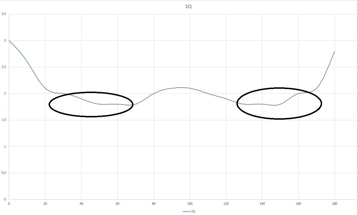Из чего следует простое следствие: Если при одинаковой конструкции и одной и той же упругости (можно ориентироваться на FA) остаточный зазор (HR) у какой-то лыжи выше, то значит её горбы более острые и более приближены к точке приложения силы (колодке)
