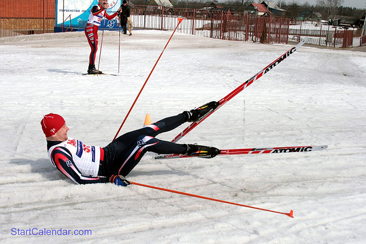 Первое, что очень удивило в Головино - это встреченный на стоянке господин с усами в красном комбезе, при параде, уже готовый стартовать! Мы прибыли почти вовремя, но он опередил нас как минимум на полчаса! В дальнейшем мы все так же не переставали удивляться - количеству снега, массе знакомых лиц, сложности регламента и подсчета очков, весеннему солнцу, всеобщему хорошему настроению.