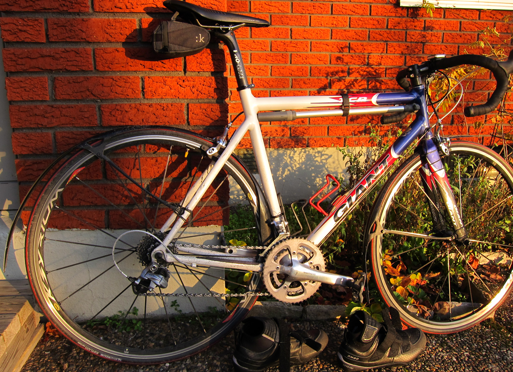 Купил и установил на свой старый алюминиевый Giant щитки Crud, Road racer mk2. Полномерные щитки для гоночного велосипеда. Эффективность щитков впечатляет. Зима изрядно запаздывает, слякоть на асфальте, но я продолжаю наматывать километры. Обычно на День Милиции на лыжах катался, а сегодня на шоссейнике: