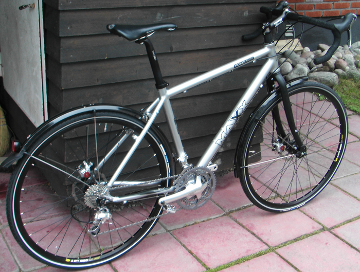 Колеса 700, рама дорожная от 2007 года выпуска. Самая большая сложность было найти раму и вилку с креплением под дисковые тормоза и одновременно под 28" колеса. Под 26" сколько угодно. Тормоза Avid BB7, компоненты модифицированная Ultegra Triple (поставил вперед звезду на 26 вместо 30).