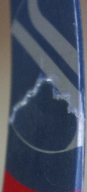 Сломалась простая любительская лыжа: поперёк лыжи на расстоянии 15 см от носка сломался верхний слой, скользящая поверхность осталась целая.