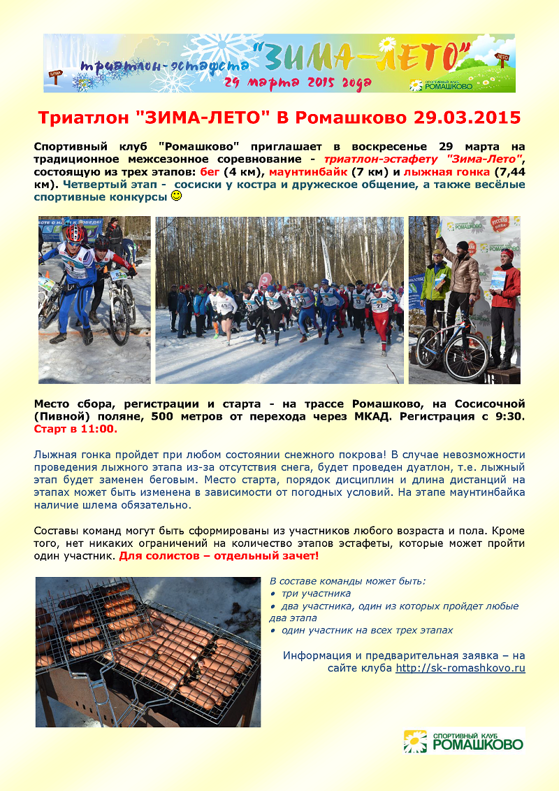 По состоянию на вечер 27 марта СК "Ромашково" не видит возможности обеспечить достойный и безопасный лыжный круг. Поэтому принято решение проводить ДУАТЛОН: