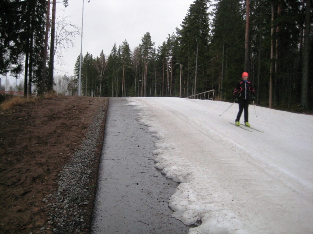 Понятно, что главным магнитом, главным стимулом приехать в ноябре именно в Иматру, а не куда-нибудь ещё, оказалась великолепная 5-километровая лыжная трасса, созданная здесь из прошлогоднего искусственного снега. Собственно, и заставило нас с женой перекроить планы и заехать в Иматру на неделю перед нашим броском на север Финляндии в Саарисельку.