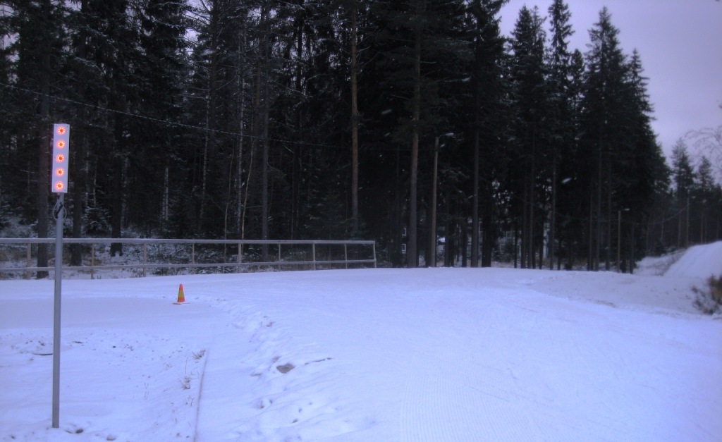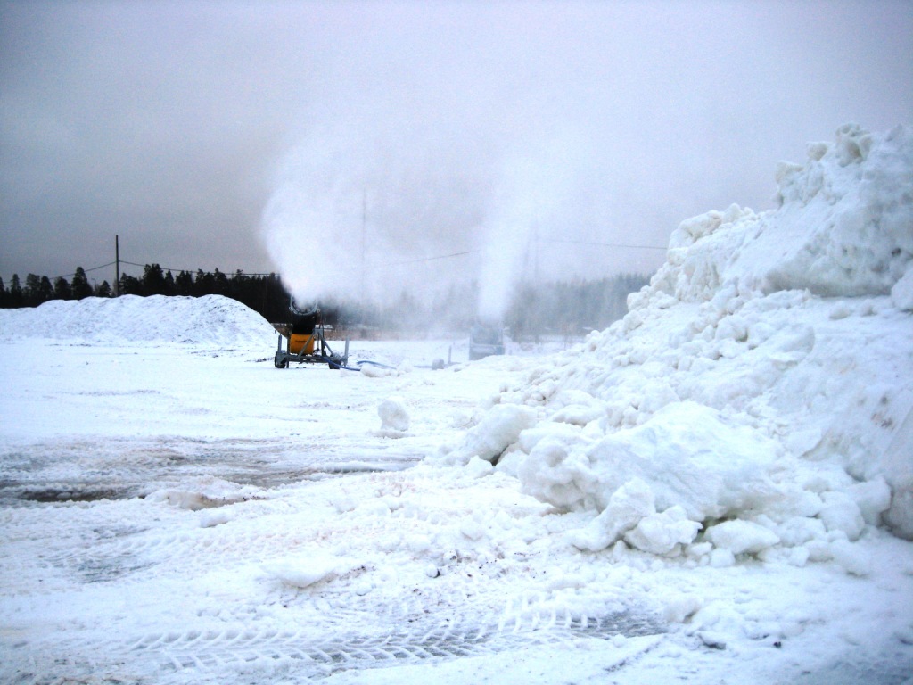 Спасли ситуацию морозы. Уже через два дня после нашего приезда температура опустилась ниже нулевой отметки, трасса перестала "плакать", а ещё через день в Иматре пошёл снегопад. И таки-да, в Иматре, как только случился устойчивый минус, заработали снежные пушки. Не бог весть сколько - всего-то две, но они начали пылить, и на месте развезённой по трассе кучи прошлогоднего снега начала потихоньку нарастать новая куча. Тут же появился снег на заплатки, дырки на 1,5-километровом круге тут же подлатали, но если бы только на 1,5-километровом! Финны тут же восстановили петлю, спускающуюся к озеру, и сегодня в Иматре действует уже полноценный 2,5-километровый круг, включающий в себя пару довольно тяжёлых подъёмов и несложную часть, проходящую вдоль коттеджей Saimaa Life, так хорошо подходящую для вкатки.