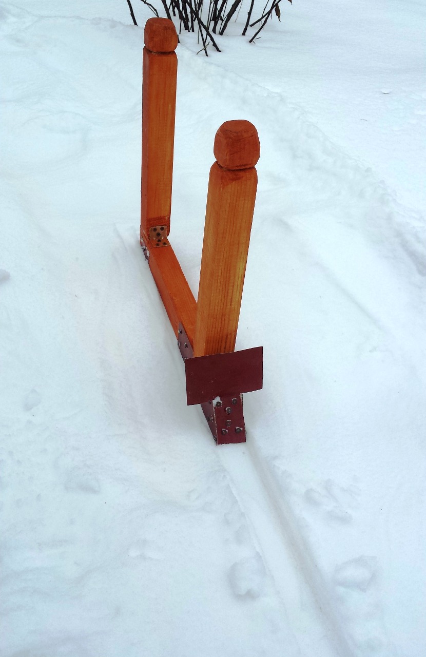 Тренер из Казахстана Ф.С.Морозов прислал фотографии самодельного станка для подготовки одиночной лыжни. Он рассказал, что был удивлён, увидев, как тренеры пытаются в жёстком фирне сделать некое подобие лыжни каблуком ботинка для того, чтобы запустить смазочную "мышку". Тогда же он и сделал этот станок и прислал фотографии в редакцию. Выкладываю эти фото по просьбе автора.