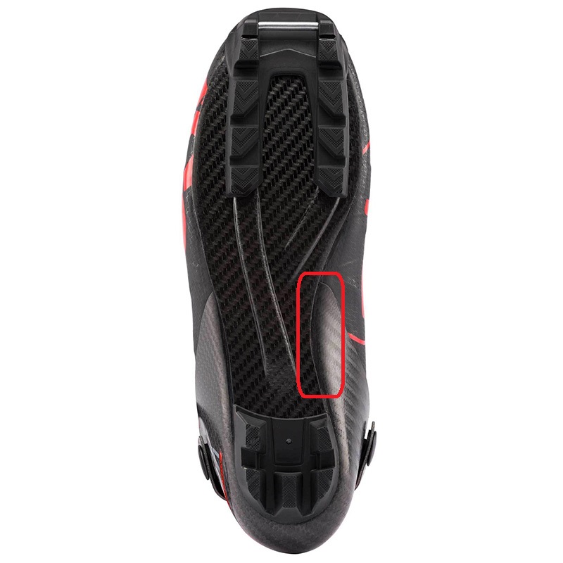 Добрый день! Имеются карбоновые ботинки Rossignol Skate Premium прошлого сезона, по которым у форумчан было много вопросов к качеству подошвы. Слышал про отрывающиеся носки, но к омне беда пришла с пятки:) В этой модели пятка склеивается с подошвой. Стал замечать, что на обном ботинке в месте стыка появилась щель. Глубина - пара сантиметров, длина - сантиметра четыре. Место указал на картинке Вопрос к знатокам: Чем заклеить все это безобразие? Чтобы и прочно было и эластичность осталась?