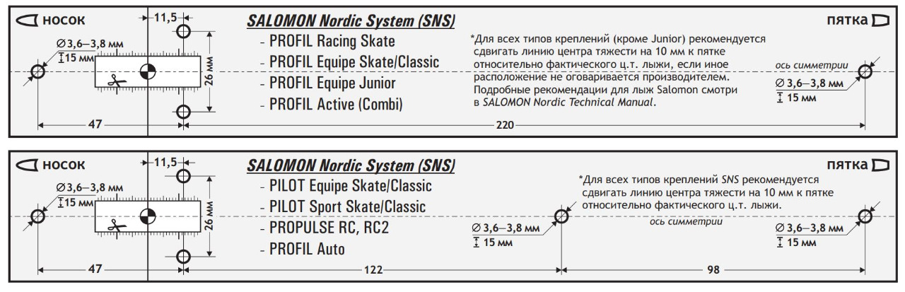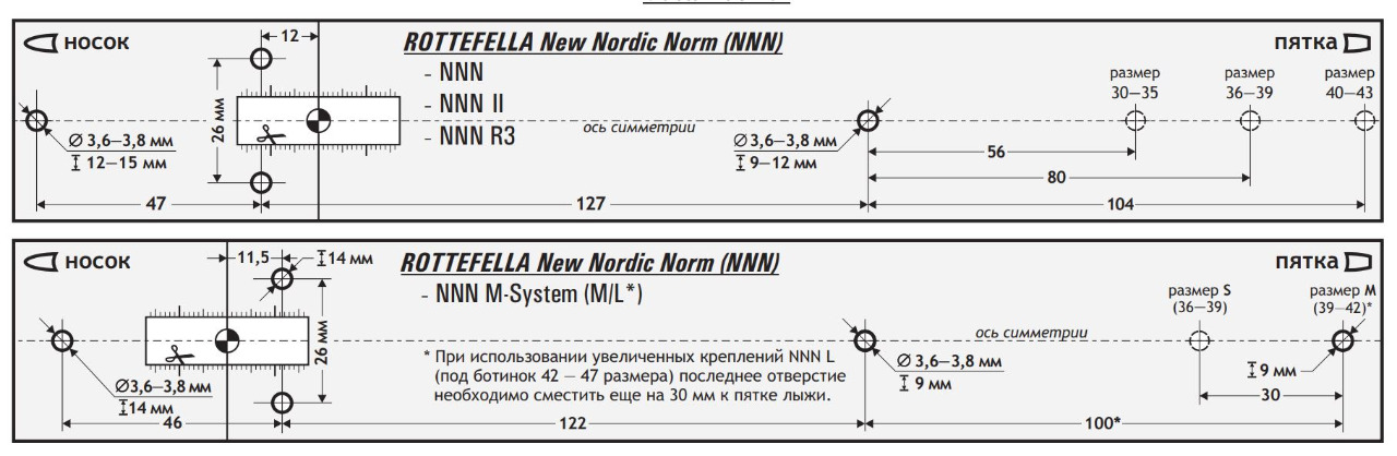 Роттефелла скрю перформанс по "дыркам" полностью совпадает с саломоновским пролинком, разница только в том, что у сало ось находится на 11.5мм впереди двух задних дырок, а у ротефеллы посередине между передней дыркой и задними