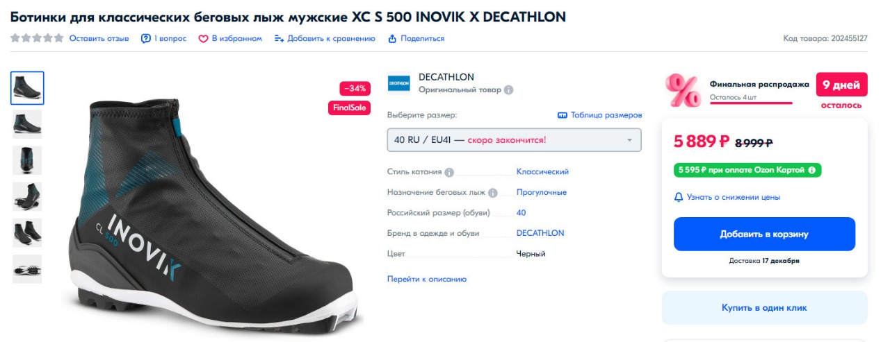 элите достаётся даром. Остальные платят бешенные деньги за фантом (карбон, всякое восхищение и т.п.) Вот лыжи да, другой случай, а тут то?!!! Объясните мне, пожалуйста. Только аргументировано, а не «а ты попробуй прокатись в них». Катался….. По вопросу. Купил недавно через рабоче-крестьянский Ozon боты inovik Xc s boots combi 150 за сущие копейки, конём тренить, жаль хорошие спайны бить. Свой размер взял, в результате чуть-чуть б.палец упирается, ну, думаю, намучаюсь. В результате - на первой же трене катал без какого либо дискомфорта. Боты абсолютно подошли, более того и марафон в них, если надо, побегу. Так что для меня inovik боты оказались удачными.