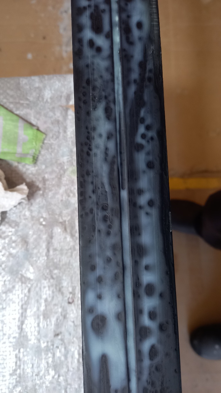 Это - парафин Рэй LF холодный. После HF и/или теплого картина чуть другая - но фтор все равно заметен (эффект его наличия). После CH поверхность ровная и однородная, без лакун, только белые наплывы, где парафин гуще лег. Еще виднее это непосредственно при проведении утюга: парафин как будто пенится за утюгом.