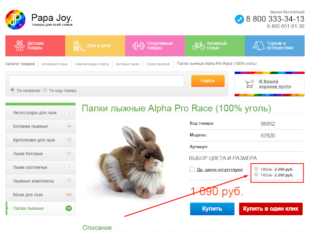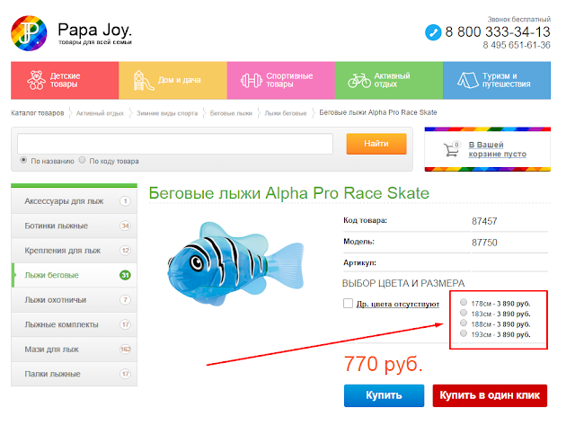 Однако зайдя на сайт видим замечательную картину. Лыжи ценой в 770 рублей превращаются...