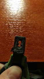 На ручках посадочные места растачиваются напильником. Там "пупырышки", вот их и снять. На темляках грани клипсы слегка скругляются. Я это делал нагревателем паяльника. Щас проверил с новыми темляками. Оказалось, что даже необработанные клипсы, хоть и туго, но входят в расточенные ручки(см.фото) . Т.е. клипсы надо обработать паяльником совсем слегка. На клипсах место под отверстие уже отмечено(на фото видно). Гравером на больших оборотах сверлите-проплавляете новое отверстие. Все делается очень аккуратно и вдумчиво. Эти темляки кастомил несколько лет назад крупно -