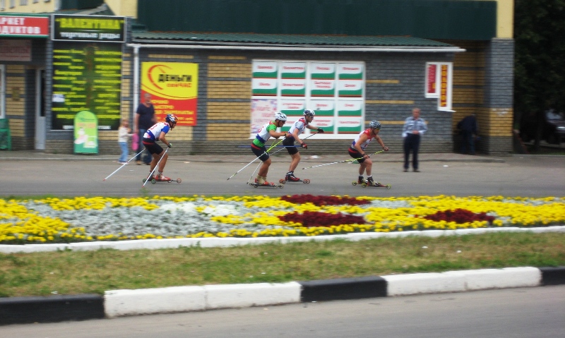 Тут всё по-другому: народу в поворот входит больше, скорости выше, спортсмены - агрессивнее. Так вот, в группе М1 спортсмены неизменно проходили его в два ручья! Но ещё большее удивление вызвала у меня основная группа – там спортсмены выстраивались в повороте в три ручья! При этом я увидел, как ведут себя в повороте лидеры: Игорь Глушков неизменно выстреливал именно перед поворотом из-за спин более осторожных соперников, захватывал бровку и проходил поворот на очень высокой скорости, на грани фола, почти всегда втыкаясь в бордюр на выходе из поворота.