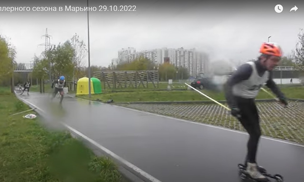 отстать. Он напихался прилично за 3 гонки, да еще и тут роллеры были медленней - в момент обгона на ПРЕДПОСЛЕДНЕЙ прямой было все понятно уже. Большая разница скоростей, причем я начинал обгон не из-за его спины, как надо по классике, а сразу шел сам, справа. И заранее понимал, что по классу преимущество у Алексея, а по роллерам и степени усталости - у меня. Вообще, не принято реально заранее идти по бровке, если нет коридора. Если просят и обгоняют (или ты сам слышишь и видишь это) - принято смещаться. Но не раньше. Когда я обгонял Алексея на предпоследней прямой - он до этого рванул из-за спины Сергея, резко влево. Я - чуть позже - за ним, поскольку рывка ждал как раз от Сергея, из-за роллеров более быстрых. Стал на бровку справа, поравнялся с Алексеем. Он чуть меня решил поддавить - сместился правее, причем мы роллерами работали скрестно, он - правым, я - левым, чуть не зацепились. Я сказал: "Справа!", и Алексей вернулся обратно на свою бровку. К повороту уже был некий просвет: роллеры РАЗНЫЕ! И на прямой финишной мне нужно было просто встать, чтобы Алексей догнал - там не до кроссинга было, и это НЕ ПРИНЯТО, и НЕ НУЖНО никому. Цель была - доехать целыми, с учетом круговых. И силы были, мог добавить еще. А Алексей - да, боролся, не бросал почти до финиша, но стук палок не давал никаких сомнений: расстояние увеличивается. Всю прямую. Задним числом надеюсь, что поборолся бы и при равных роллерах, финиш - моя сильная сторона, и силы были - но тут хз, и прямая это очень плохо под масс-старт и спринт на финише подходит: узко, + круговые. Но роллеры были, какие были: у тебя, меня и Сергея - быстрее, чем у Алексея. Все зависящее от меня я в этой ситуации (и разнице в 20 лет, на минуточку ) сделал. Старался - честно и аккуратно. Надеюсь, вышло. Если Алексей иного мнения - повторюсь, с радостью с НИМ обсужу, сделаю выводы, если что, извинюсь, если что (даже не могу представить - за ЧТО, но мало ли...). ЗЫ: Ребята! Вас бы на КМ, к итальянцам и Глушку! Мама дорогая! Один итальянец попу тебе ставит, с кроссингом, другой - в калитку ускоряется. И так - ВСЕ гонки! И ничего - боролись, выигрывали... Или в Москве, на набережных. Там и Кукрус на газон вылетал, из-за желания Игоряна опередить в повороте на финише, и Витек Гуляев соперников "ненарочно" на бордюр выдавливал - а потом все вместе обнимались, праздновали гонку, общались, РАДОВАЛИСЬ виду спорта и жизни. Сейчас - институт благородных девиц на этом фоне. Но претензий ТОГДА - почти не было. Разве что некое битемордие вспоминается, и то несостоявшееся, на Поклонке, после финиша марафона, между двумя ветеранами М1, между прочим (без меня! ). И никто не выдумывал по видео ничего - очно люди говорили сразу, если кто чем недоволен. Леша Трушин меня и Наума поздравил на награждении, Большой Шлем получил - и был РАД! Претензий не было - да и за что? Роллеры - РЕЗИНА, Селекта 1 - тоже резина, Спайн 78 - резина, все могли выбрать ту резину, что хотели (у меня и тебя вообще нет другой, как я понимаю). А еще что можно обсуждать было?...