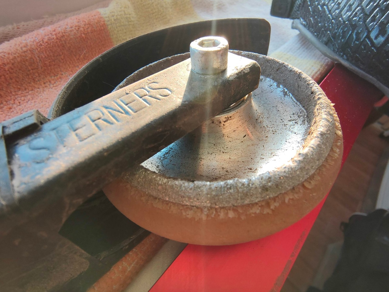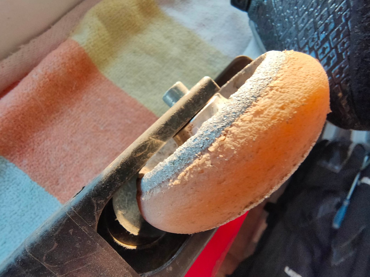 Пару лет назад снял с гоночных роллеров колеса по причине, как мне тогда казалось, критического износа. Сейчас посмотрел на них - да офигенные колеса, еще катать и катать и поставил взамен героя этого рассказа. Глядишь, через пару лет и эти колеса покажутся нормальными ( хотя со спуска со стадиона уже откровенно скользили всеми четырьмя колесами алюминием по сухому асфальту ).