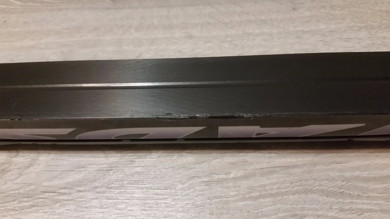 Состояние - хорошее, коцки и царапины присутствуют, в районе колодки был содран кусочек канта (наехал на корягу), залито ремонтным пластиком.