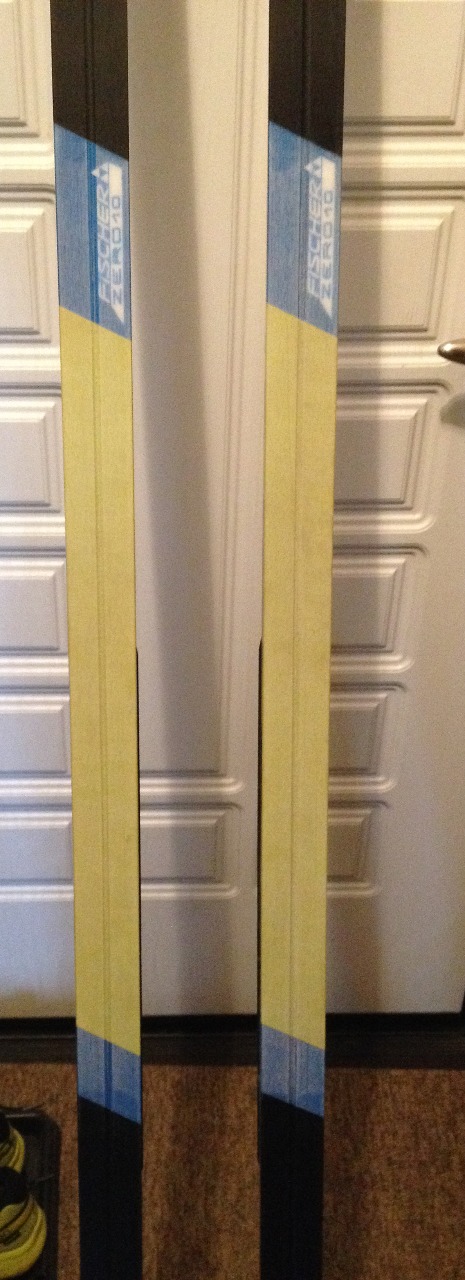 В продаже. Состояние лыж как у новых, без царапин. Лыжи без мазей держания работают в сложных условиях, в околонулевую температуру, на свежий снег. Холоднее -5 можно мазать твердыми мазями держания. Мазь потом легко снимается смывками с желтой вставки.