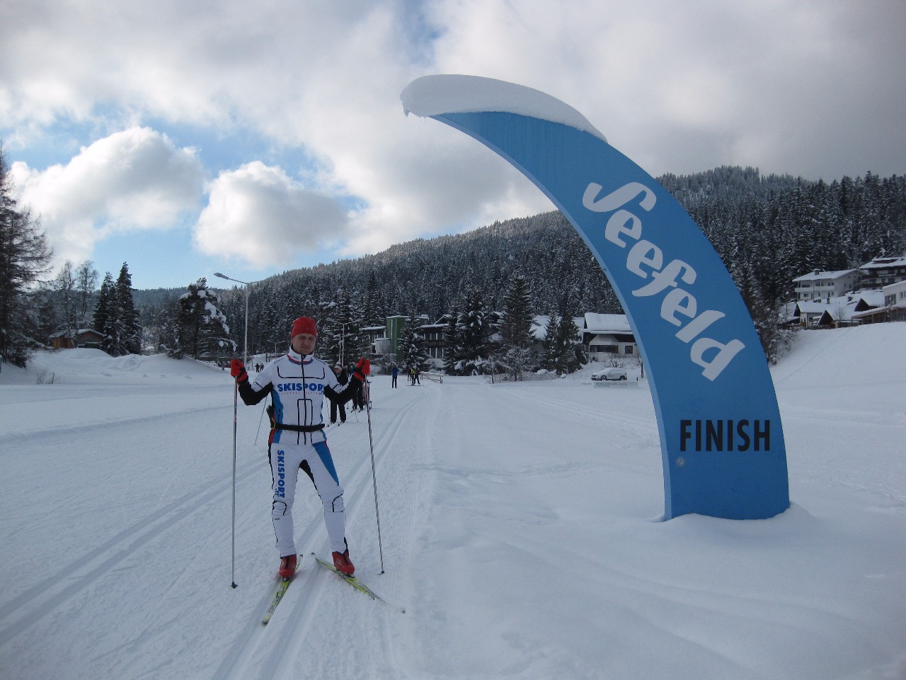 приключения в бесснежном Обертиллахе, посвящаю Сергею Яковлеву. как то обошла снежная тучка это место... этой зимой .снега на полях нет совсем !! до трассы из отеля ходили вниз пешком ,за то солнца и голубого неба !!!сколько хочешь , нужно было лицо мазать кремом от загара !. .организаторы насыпали круг 10-км ..биатлонные круги были раньше насыпаны , они добавили большую петлю по полям в сторону лесопилки и полностью насыпали правый карниз вдоль речки и что ещё разнообразило гонку ,они запустили участников против часовой , по сравнению с прошлыми годами . для тех кто бегал --стартовали как обычно ,только стартовую поляну в ширину уменьшили вдвое, и после первого подьёма налево вниз ,спуск с правым поворотом (получился с малым радиусом и на старте образовался завал )небольшой подьём ,снова налево , спуск к старту , проход через туннель , подьёмчик на стадион и вдоль стрельбища вниз направо и в подьём (в прошлом году , да и раньше это было большим финишным спуском )и этим противоходом вдоль речки до прошлогоднего первого спуска по полю (теперь он был подьёмом ), так как кругов было четыре -первый как бы короткий=9-км , на втором кругу уходили направо в сторону лесопилки с длинным и довольно скоростным спуском и левым поворотом (народ падал особенно на третьем кругу когда подразбили трассу до льда )и почти параллельно спуску длиииииинный тягун-подьём и снова к старту и стадиону . этот круг приблизительно 12-км ,3-тий круг снова длинный, и 4-ый короткий .такой же как и первый...по моему полару получилось 39-300-то ,и можете поверить для первого марафона ---этого мне вполне хватило ! зачем так долго описываю трассу , чтобы стало понятно , что марафон был и не 42 -км , но на этой высоте да ещё в нашем пред пенсионном возрасте о "лёгкости " трассы можно уже как то и забыть . погода была комфортной -5-ть наверно на старте ,жёстко-фирнистая лыжня из искусственного снега ,только вот со смазкой я что то не попал ,первый маленький круг держало ,а потом стало держать всё хуже и хуже , а у Серёге Колышева наоборот , со спуска ехали не очень ,за то держало как на "гвоздях", со старта он уехал , в конце пологого спуска вдоль речки догоняю ."Серёга что случилось ?"--а он " всё нормально , только не едут ", так мы с ним три круга и бодались он на подьёмах уезжал ,я на спусках догонял , в на 4-ом кругу я уже догнать не смог , уехал Серёга . Лидеры , Стас Резак и за ним 2-ой наверно секунд 4-5ть , обогнали меня как раз на развилке , они на финиш , а я на ещё 9-тку , ехали конечно без ног , работа у них такая , призы выигрывать ..когда обгоняли меня , смотреть конечно как то не очень ,вроде бы как бы и на классических лыжах , а внешне смотрится чудно ,хотя очень быстро и мощно ..(по сравнению конечно со мной !) нельзя остановить фармацевтический и тренировочный прогресс... не дай бог доживём когда вперёдназадбоком --будет быстрей ехать ...----вот чудно то будет !!! вчера развёз свою команду , кого в аэропорт Инсбрука ,кого в отель , и посмотрел трассу Марчи ,. если снег не навалит за неделю !! вот это будет (как я помню , было уже такое !) бесснежное- ледовое -мордопопаразбивание !!!!!! трасса отсыпана вся , от Моэны и наверно до финиша , жёстко-фирнисто -ледяная ...но самое страшное , что вокруг снега нет совсем !!! если на карнизных спусках кто й то улетит !!!??.....но не буду паниковать , лучше побольше подплужу..и палки возьму не гоночные , а пот
