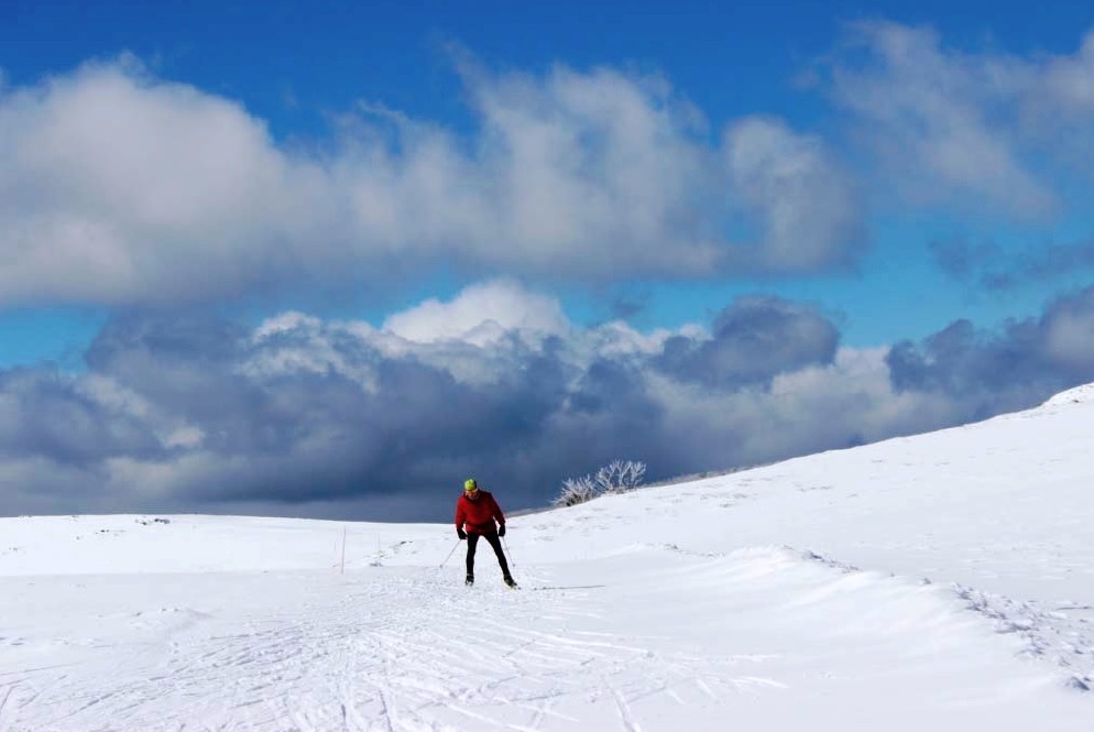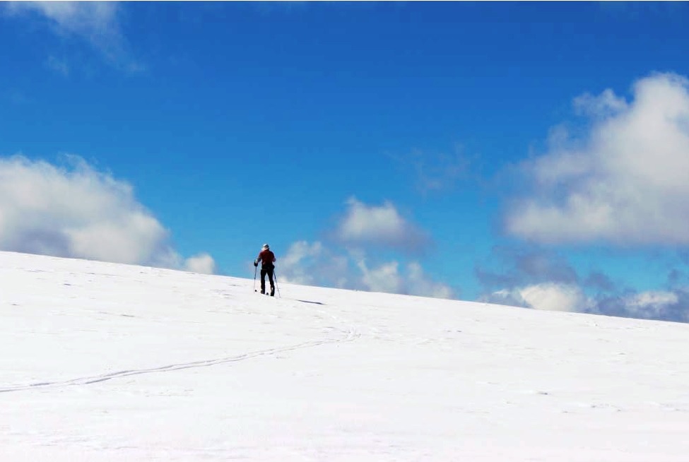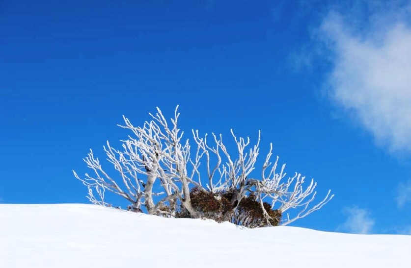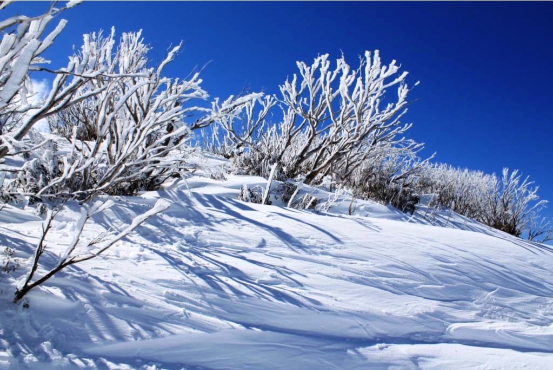 Лес с eго эвкалиптами вдруг резко отступил и стоят просто покатые голые огромные холмы‐увалы, заваленные снегом ‐ просто мечта лыжника.