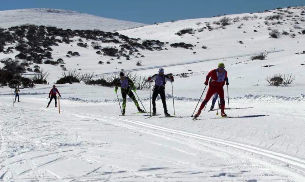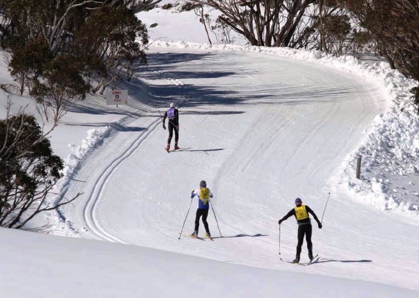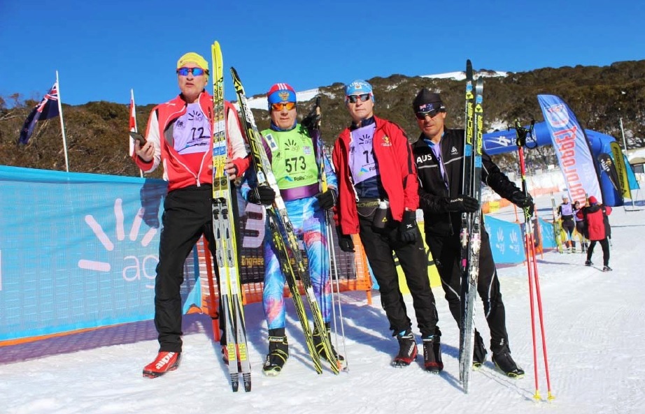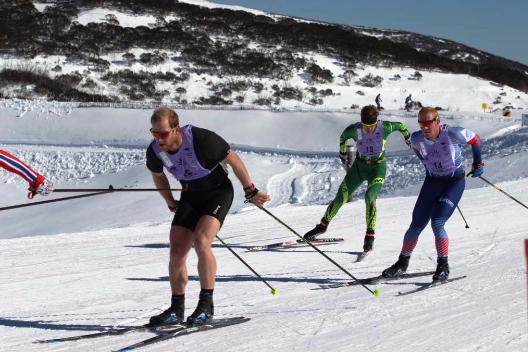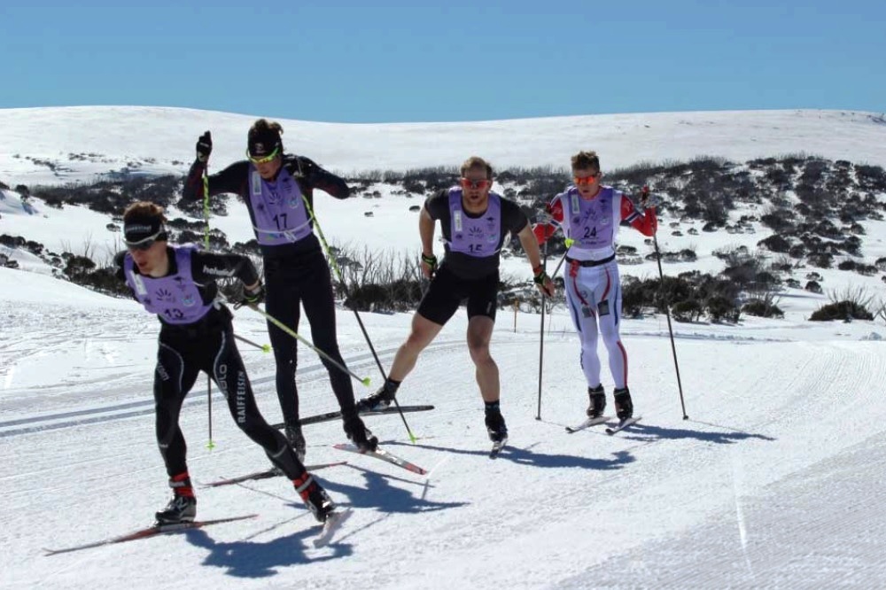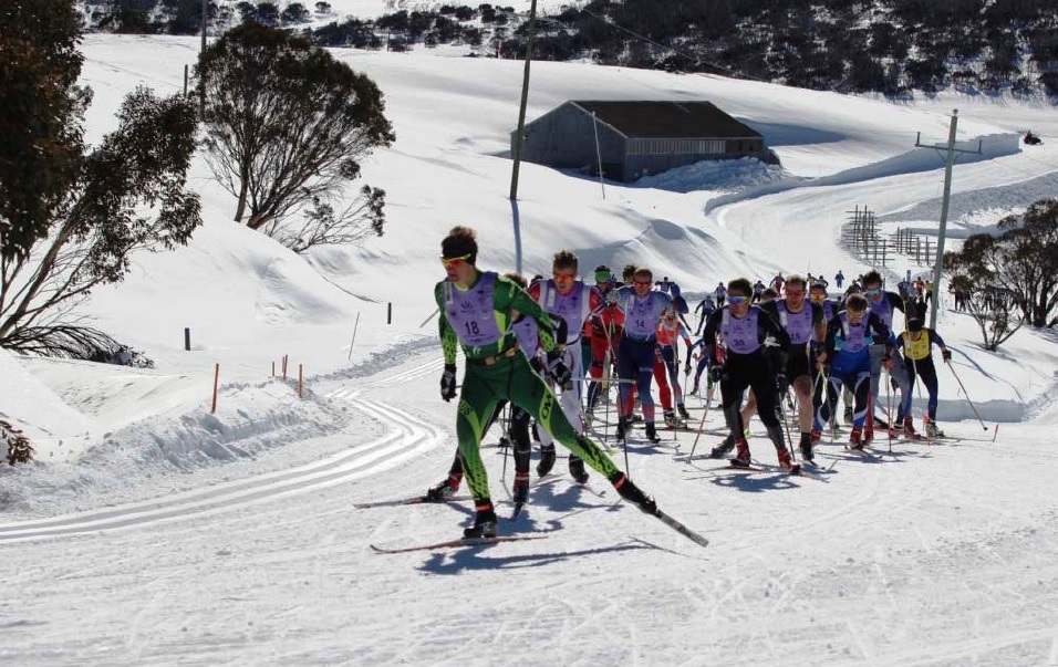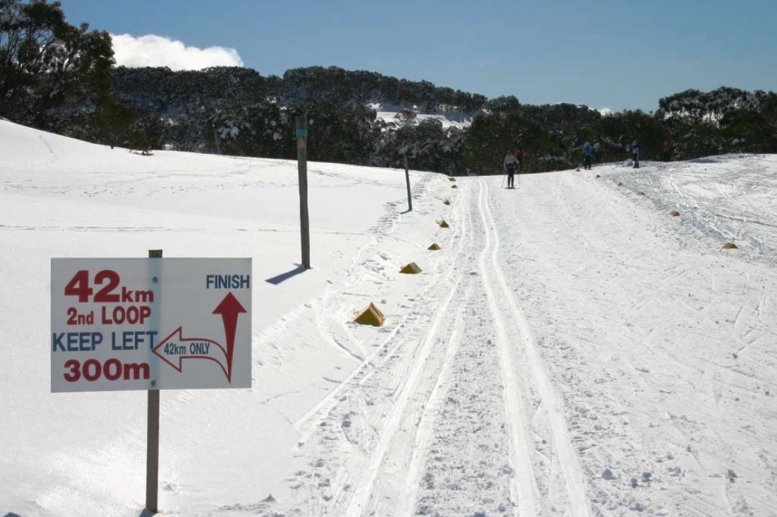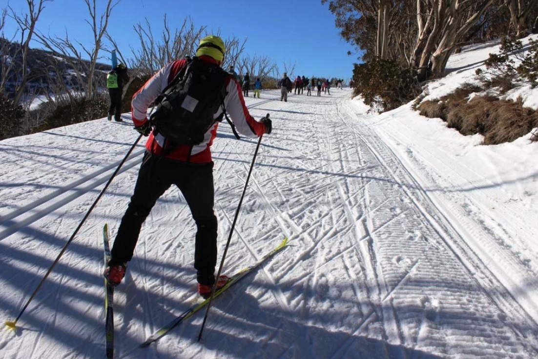 Народ стоит ‐ радостный такой!! Кто в футболках с коротким рукавом, кто в шортах... Чудные они, "аувстралы", зима ж всё-таки... [Многие ехали в кепках или даже в панамах. И конечно же, кремом замазаны до самых лыж ‐ солнце такое, что за гонку можно серьезно обгореть.]