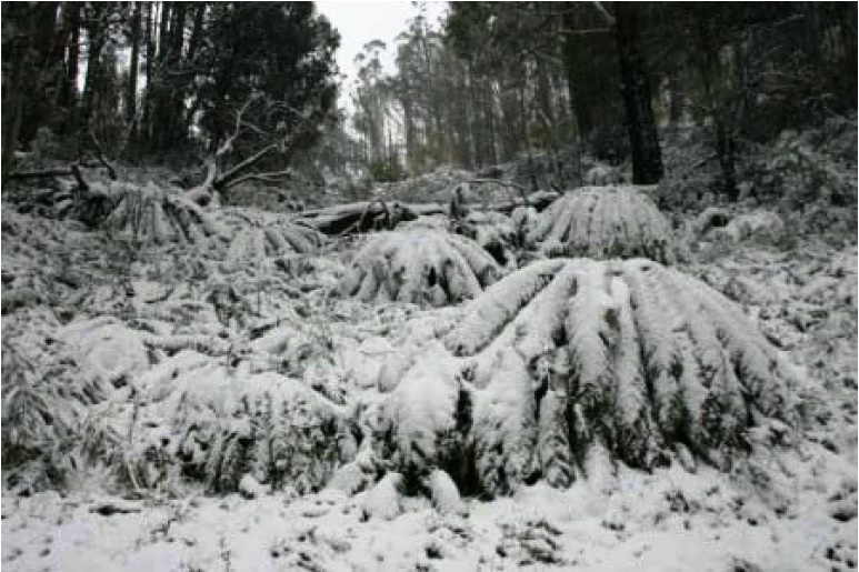 Которые зачастую могут быть завалены снегом. Как вот эти папоротники!