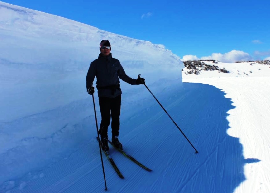 "Что за лыжи?" спрашиваю, - "Зеро!" Я даже остановился! Как же так, мол?! Погода, да и снег - совсем не для зеро! А он ‐ "специфический австралийский снег"! И погода здесь другая, совсем не как у вас в европах!! Посмеялись, и я с Ринатом пошёл на фотосессию напротив эвкалипта... Потихоньку едем‐едем. Небольшой спуск, подъём, красота!! Снег, трасса занесённая, впереди проехало человек 10‐15, наверно, нам трассу проторили. И тут вылезаем на плато......