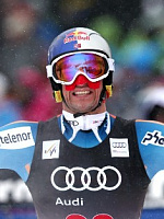 Второй Ханнес Райхельт, также не блиставший в предварительном заезде. Отставание опытного австрийца от Акселя + 0.17 с.