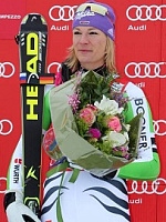 Мария Хёфль-Риш выиграла уже третий даунхилл сезона и завоевала 80 подиум Кубка мира. От рекорда Аннемари Мозер-Прёлль, немку отделяют 33 пьедестала. Результат Хёфль-Риш - 1:17.84.