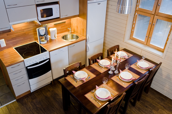 Апартаменты Aurinkorinne 49 спланированы для семей или компаний. В апартаменте (49 кв.м) имеется отдельная спальня (2 кровати по 80 см шириной каждая), спальная комната (двухярусные кровати — нижняя 120 см шириной, верхняя 80 см шириной), кухня, туалет, сауна и балкон. Всего спальных мест 4+2 (диван в гостиной раскладывается на двуспальную кровать). Комфортная загрузка — 4 человека. Цена за апартамент (7 ночей) – 540 евро, на четверых по 135 евро/неделя.