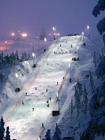 Почему декабрь? Трассы в Руке великолепно освещаются. Немного народа перед рождественскими праздниками. Подъемники ходят пустые до 7 часов вечера, при этом за час гарантированно прокатываешь около 10 км. Невысокие цены.