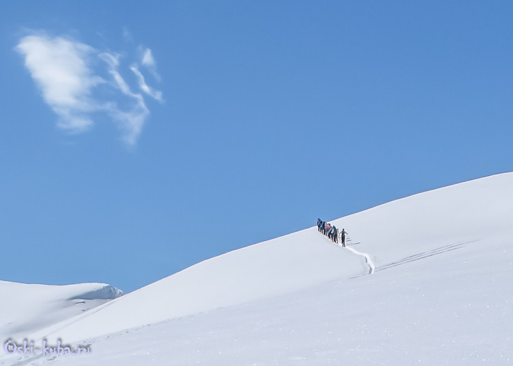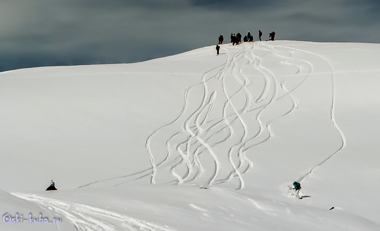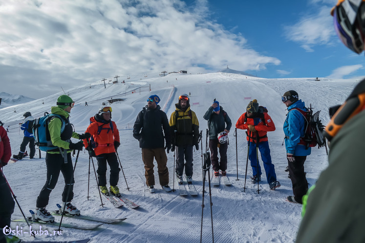 На меня гиды произвели очень приятное впечатление. Особенно безукоризненной техникой катания. Но, большой минус – мы катались большой группой, а когда малой – состав был не ровный. Ну и вечный треш – общая с бордерами группа. Впрочем, само катание по целине идет нормально. Но когда выкат по долине проложен лыжниками (гидов на досках я не видел) – ты готов пристрелить этого бордера, который идет пешком, там, где ты проскакиваешь без толкания палками. В итоге наш десятиминутный выкат занял более 40 минут. Но гиды при этом оставались невозмутимыми и даже шутили. Не катальные заметки