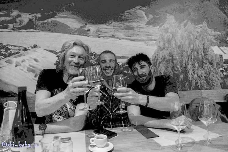 Еда в Ливиньо – это не питание организма. Это обряд, священнодействие. Для меня – чей Бог и смысл жизни – лыжи, 1,5 часа на перекус или 2 часа на обед – это немыслимая потеря катания, а среди местных вопрос так не стоит – «еда или каталка?». И еда и катание!!! Но еда, явно не на последнем месте Знакомство с Ливиньо началось с фри-вечеринки. Я, «безъязыкий», все больше хлопал ушами по щекам и погружался в атмосферу с помощью коктейля похожего на наш семейный «Борщ», постепенно переходя «на повышение». И довольно скоро я и без английского стал понимать, что все фрирайдеры братья и за это нужно выпить еще Вечеринка задала хороший тренд для нашего мгновенного визита в Ливиньо.