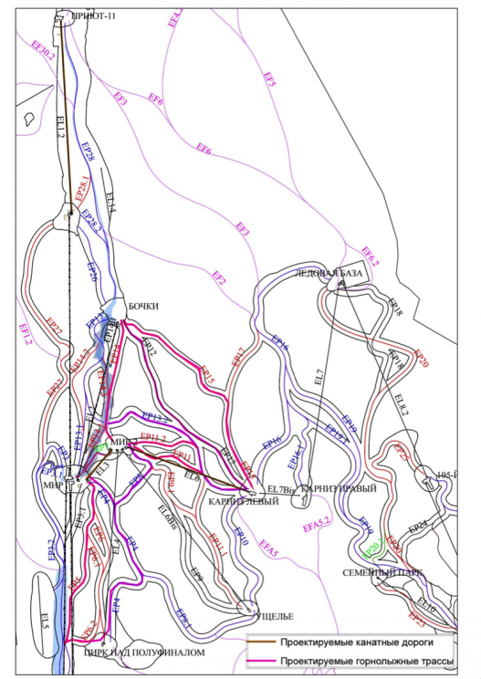 К 2022 году ООО «Курорты Северного Кавказа» планирует построить на Эльбрусе девять трасс общей длиной 8260 м, а также три канатных дороги. Новая горнолыжная инфраструктура разместится на высотах от 3 000 до 4 200 метров над уровнем моря.