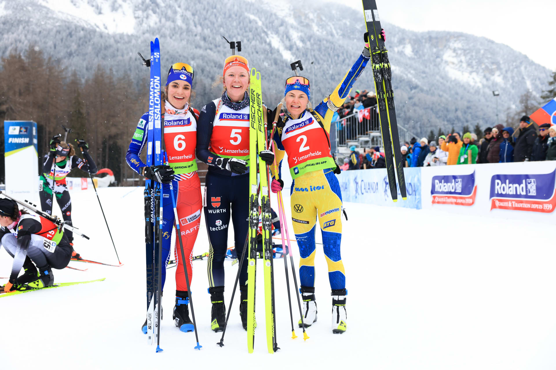 Второе место с двумя штрафными кругами у Тильды Юханссон из Швеции, на третьем француженка Жилонн Гигонна, у неё один промах.