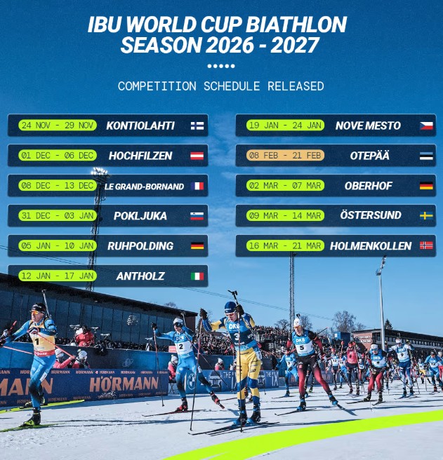 Международный союз биатлонистов объявил о календаре Кубков мира 2026–2030 годов, включающем ряд интересных инноваций.