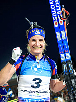 Второй стала шведка Ханна Оберг, стартовавшая с 14 места, а третьей - француженка Осеан Мишлон, начинавшая гонку 13. Обе допустили по два промаха.