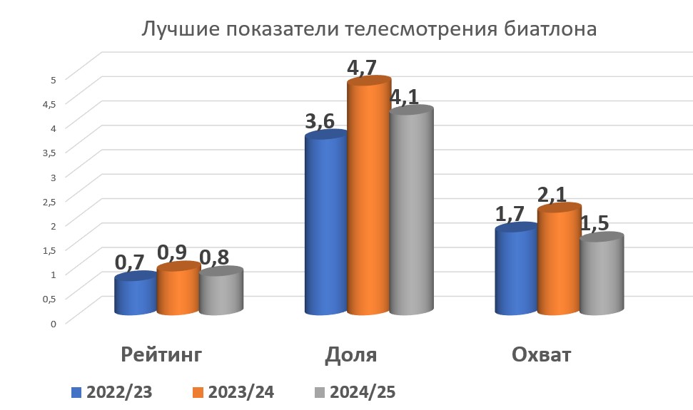 На днях генеральный продюсер телеканала МатчТВ Александр Тащин отчитался об очередных успехах показа биатлона. Правда не сослался на источник информаци. Не исключено, что у федерального канала есть свое подразделение, занимающееся расчетами. Наши предыдущие наблюдения не раз показывали серьезные различия между цифрами официалов телеканала и другими не менее уважаемыми экспертными организациями. Иногда некоторые медийные компании, не доверяющие сторонним независимым организациям, заводят свои профильные службы.