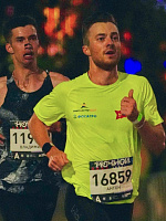 — «Ночной забег» на 10 км. К полумарафону я не был в достаточной степени готов. Это всё-таки было начало мая, я тренировался меньше месяца, плюс мы стартовали отдельно от элиты, в любительском кластере. В какой-то момент я возглавил гонку и бежал один, то есть получился достаточно одинокий забег, который вообще не позволял увидеть, насколько элитные спортсмены сильнее меня.