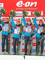 Сборная Украины в составе Юлии Джимы, сестер Семеренко и Алены Пидгрушной выиграла женскую эстафету II этапа Кубка мира по биатлону в Хохфильцене. Вторыми финишировали немецкие биатлонистки, а третье место завоевала команда Франции, выступавшая без своего лидера, травмированной Мари Дорен Абер. Россиянки до заключительной стрельбы шли на втором месте, но Ольга Зайцева на стойке получила штрафной круг, а ходом не смогла компенсировать полученное отставание. В итоге у нашей команды лишь 4 место.