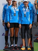 Яна Романова неплохо прошла свой этап и передала эстафету третьей, но и она жаловалась на очень тяжёлую погоду. Действительно, жара и влажность сыграли злую шутку сегодня со многими, троим (юниорам - взрослые бежали позже) даже понадобилась медицинская помощь. Но и взрослым пришлось нелегко. Начиная со второго этапа сборная России переместилась в аутсайдеры: Ольга Подчуфарова передала эстафету пятой с отставанием почти в две минуты, а Андрей Маковеев, хоть и сохранил пятое место, довёл отставание до 3 минут 10 секунд. Ивану Черезову ничего не оставалось, как ровно пройти свой этап и символически опередить сборную Словакии в борьбе за 4 место.