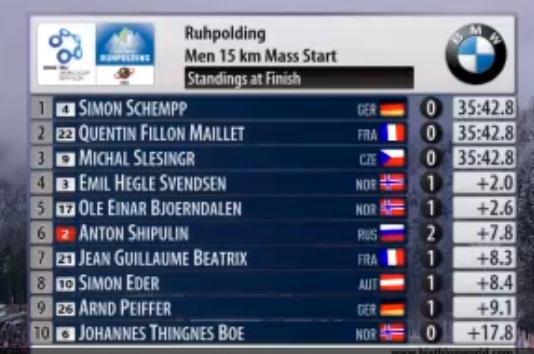 Симон Шемп выиграл гонку с общего старта на домашнем этапе в Рупольдинге