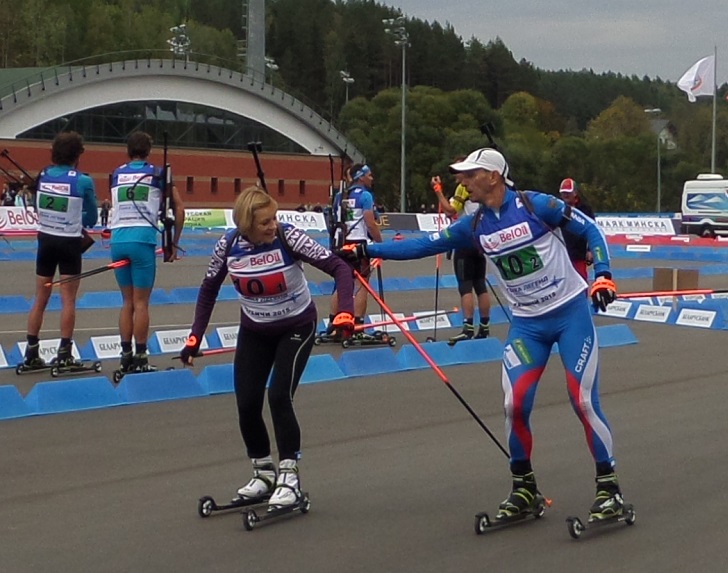 Флоранс Баверель-Робер и Свен Фишер - победители смешанной эстафеты, которая завершила сегодняшний биатлонный фестиваль Гонка легенд "Звёзды биатлона за мир" в белорусских Раубичах. Праздник удался на славу, это отметили абсолютно все участники, болельщики и почётные гости. Для зрителей увидеть своих кумиров снова в гонке, а для спортсменов - собраться вместе, посоревноваться между собой и с теми, кого не застали во время карьеры - что ещё нужно для счастья?