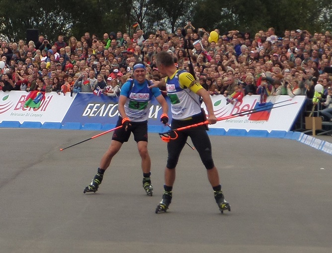— Отличная! Чувствуется, что белорусские болельщики поддерживают всех атлетов, из какой бы страны те ни приехали. Прекрасная гонка. Ха, только вот она называется «Гонка легенд» — а у нас в Германии я привык, что легенды, как правило, уже пожилые люди! И тогда начинаешь задумываться: ого, раз тебя называют легендой, значит, ты уже стареешь! Надо быть осторожным!