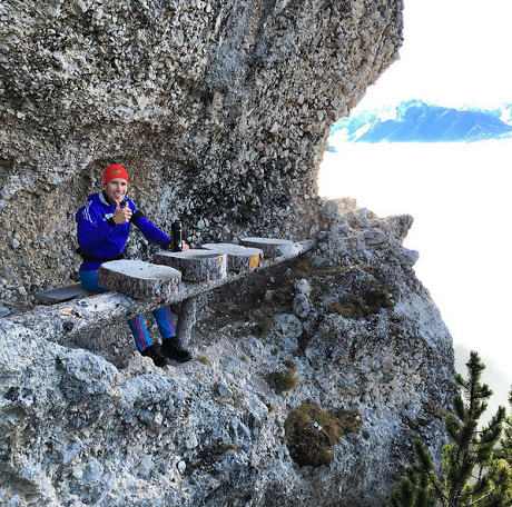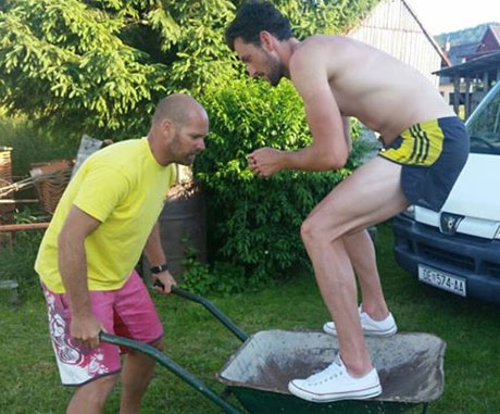 Только Яков Фак не спешит в горы, а тренирует равновесие с помощью подручных (точнее, подножных) средств: