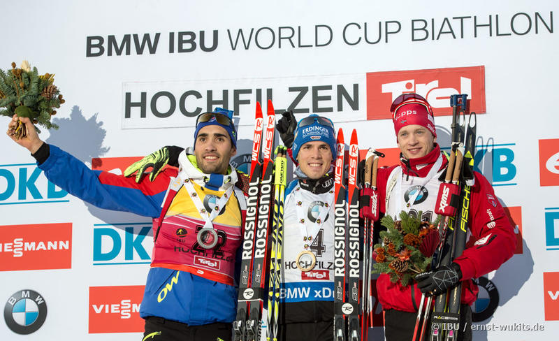 Симон Шемп выигрывает спринт на этапе Кубка мира в Хохфильцене, Антон Шипулин - в шаге от пьедестала