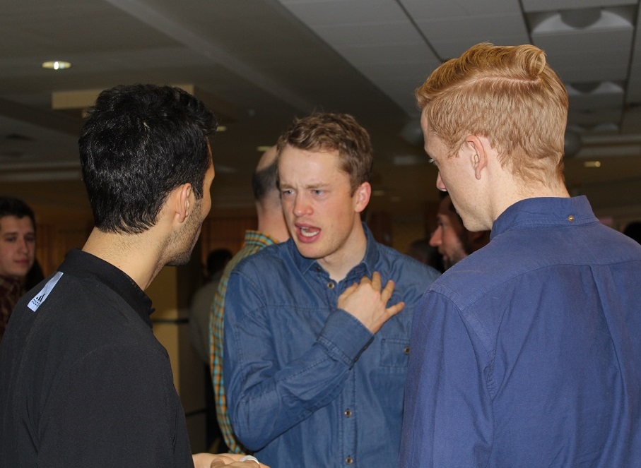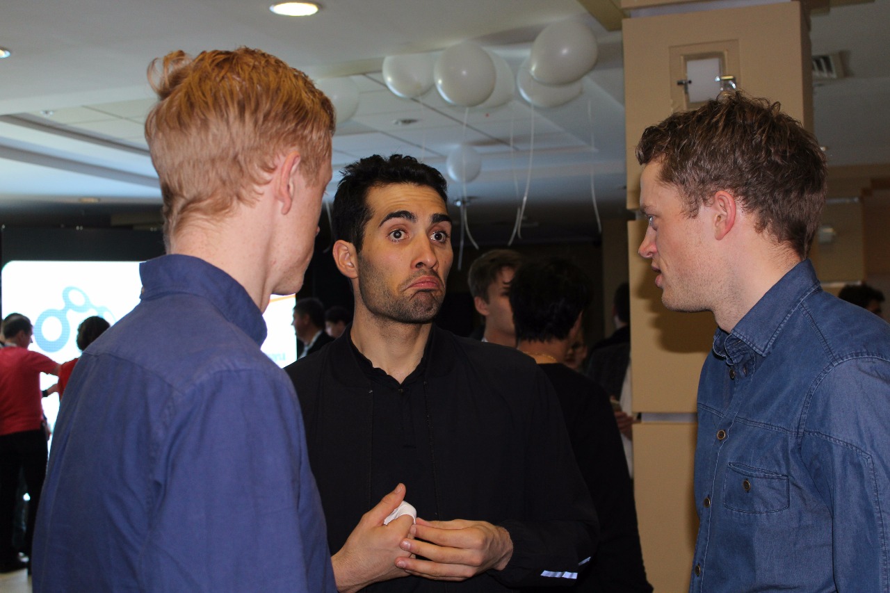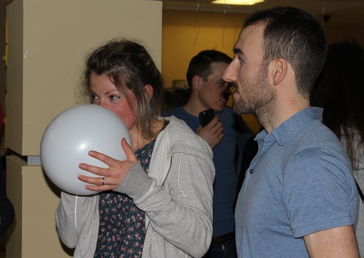 Пока Глобусы стоят на столе, их будущий обладатель общается с приятелями. Остальные ждут и развлекаются воздушными шариками.