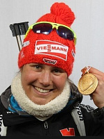 30-летняя Бахман дважды выигрывала золото чемпионата мира в составе эстафеты, также она завоевала серебро в индивидуальной гонке в 2011 году. В 2009 году в Ханты-Мансийске она одержала единственную победу на Кубке мира.