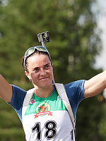 Светлана Слепцова с пятью промахами выиграла гонку преследования на летнем чемпионата по биатлону в Чайковском.