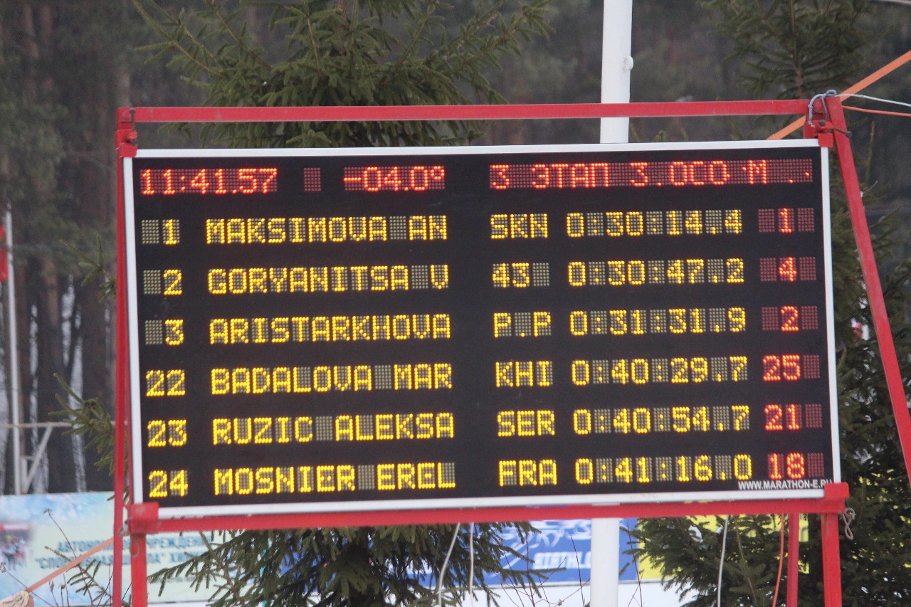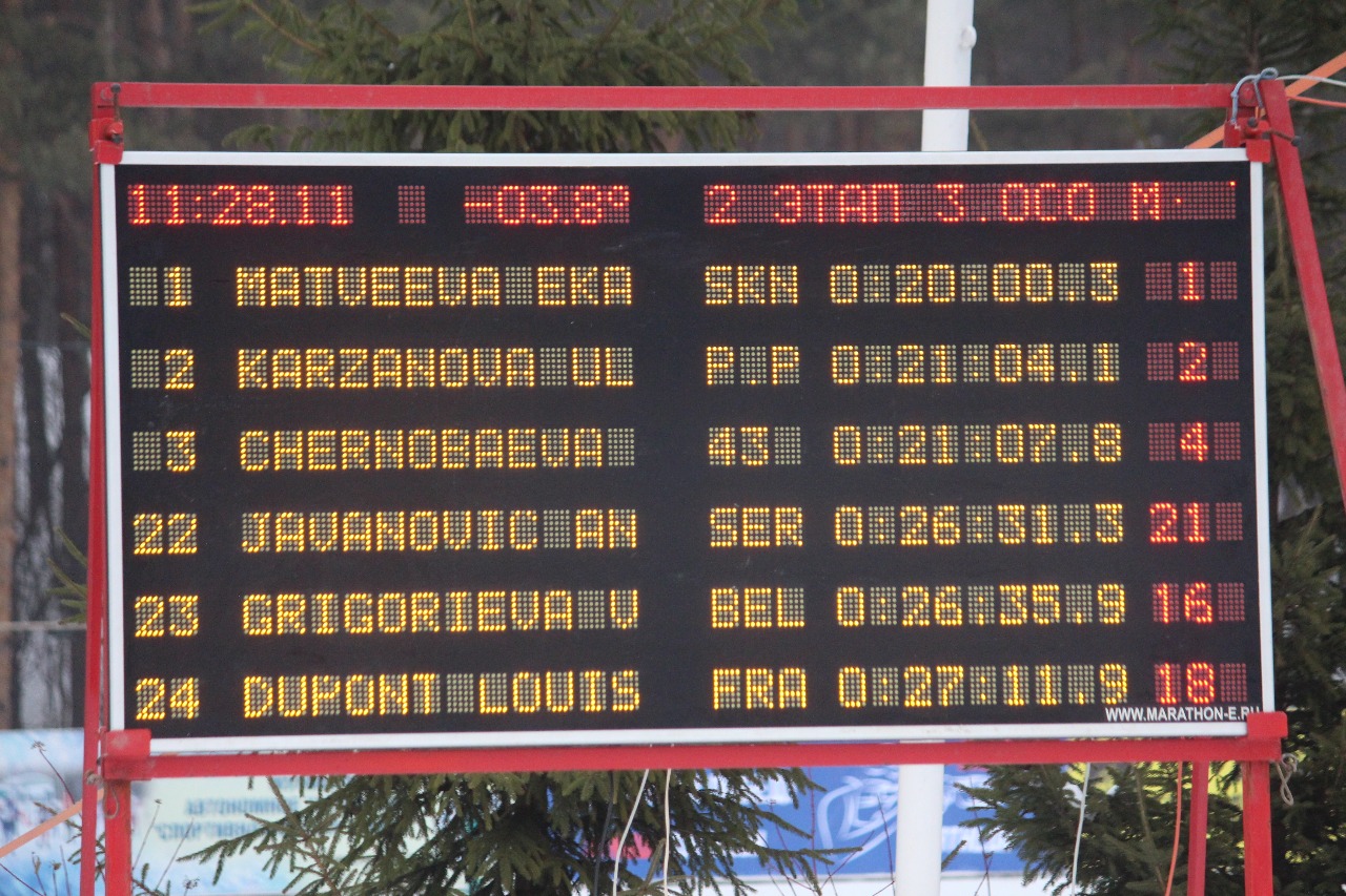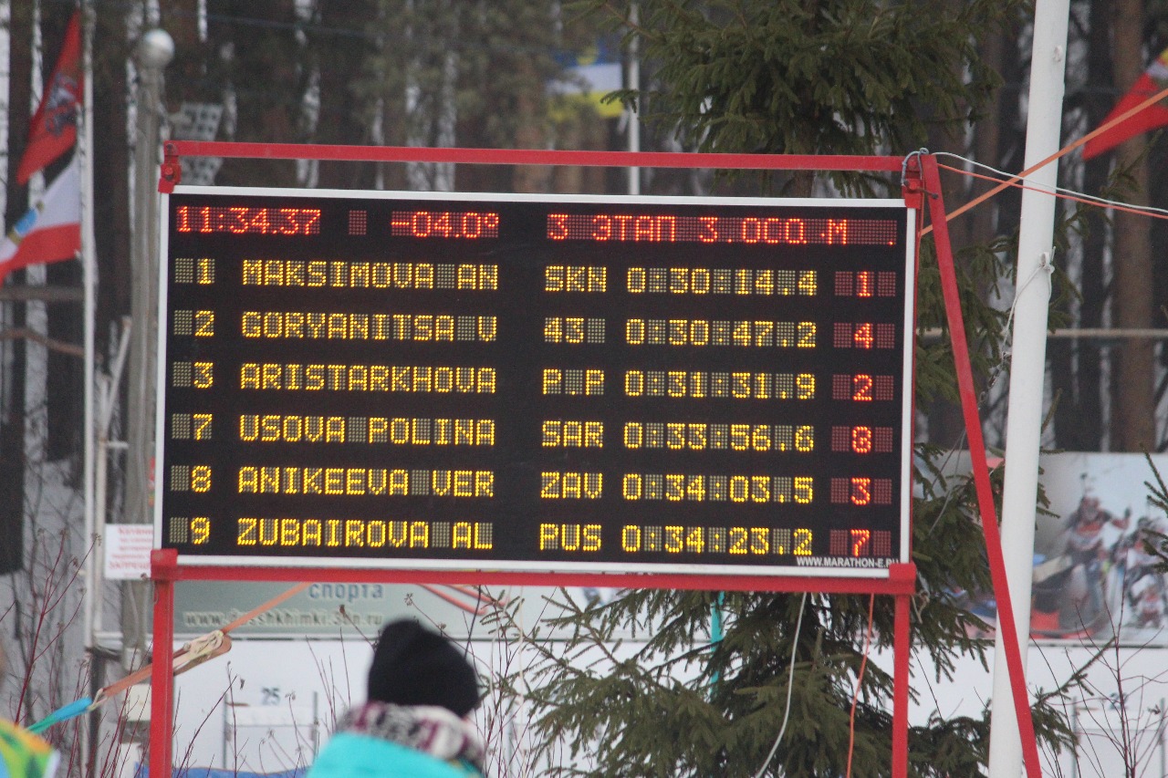 За происходящим на стрельбище внимательно следят судьи на рубеже и Президент областной Федерации биатлона Алексей Нуждов.Татьяна Секридова.Уже после первого круга и первого огневого рубежа определились лидеры. Татьяна Секридова.Татьяна Секридова.Но на стрельбище по-прежнему было многолюдно. Татьяна Секридова.Одни спортсменки, отстрелявшись без промахов, сразу уходили на подъем, промахнувшиесь - на штрафной круг. При заходе на штрафной круг не обошлось без столкновений...Татьяна Секридова.Некоторые тренеры жаловались после финиша, что в регионах не везде есть возможность достаточно стрелять: спортсменки неплохо бегут ногами, а вот со стрельбой ... Отсюда и заходы на штрафные круги... Татьяна Секридова.Столкнулись, упали, расцепились и помчались дальше... Татьяна Секридова.Татьяна Секридова.Винтовки в судейской зоне для перезарядки.Татьяна Секридова.Пока спортсмены на кругу, судьи на рубеже должны успеть перезарядить их винтовки.Татьяна Секридова.Очередная участница, преодолев штрафной круг направляется к подъему. Татьяна Секридова.Но вот и второй огневой рубеж. Спортсменка устраивается поудобнее. Татьяна Секридова.Тем временем подъезжают ее преследовательницы. Татьяна Секридова.И снова Богословская стреляет без промахов и увеличивает отрыв. Татьяна Секридова.Татьяна Секридова.И вот передача эстафеты. Лидирует ЛК Наседкина. На свой этап уходит Екатерина Матвеева. Момент передачи эстафеты лидерами.Татьяна Секридова.Вторыми на первом этапе оказались спортсменки из подмосковного Пушкино. Вторыми уходят девочки под номером 7 - спортивная школа Пушкино.Татьяна Секридова.Татьяна Секридова.София Богословская после финиша первого этапа.Татьяна Секридова.И снова падение, практически на первых метрах второго этапа... Татьяна Секридова.А на подъеме бегут на второй круг спортсменки, завершающие первый этап. Гонка перехлестнулась. Татьяна Секридова.Передача эстафеты французской командой. Юные французские биатлонистки.Татьяна Секридова.Ну а китайские спортсмены все еще ждут на передаче свою биатлонистку с первого этапа. Сайт ФБМОТатьяна Секридова.Так выглядят результаты лидеров и отстающих после первого этапа. Татьяна Секридова.А вот и первый рубеж второго этапа. Лидер на подходе к "огневому" рубежу.Татьяна Секридова.Выстрел, перезарядка рычагом, снова выстрел...Татьяна Секридова.И снова спортсменка из ЛК Наседкина стреляет без промахов. Последний выстрел...Татьяна Секридова.Татьяна Секридова.На второй позиции уже бежит команда из Павлово-Посада, представительница которой упала на старте первого этапа. Ульяна Карзанова (П-Посад).Татьяна Секридова.Нина Чернобаева московская СШЛОР -43Татьяна Секридова.Борьба продолжается. Татьяна Секридова.Представительницы иностранных команд также не намерены сдаваться. Татьяна Секридова.И вот передача эстафеты на заключительный этап. По-прежнему впереди биатлонистки ЛК Наседкина.Татьяна Секридова.А вот вторая и третья команда бегут рядышком.Татьяна Секридова.Татьяна Секридова.Когда все силы отданы борьбе, тебе поможет судья на финише.Татьяна Секридова.Борьба до последних метров и обход по меньшему радиусу на повороте.Татьяна Секридова.Ожидание передачи эстафеты.Татьяна Секридова.Сербская спортсменка перед стартом.Татьяна Секридова.И китаянка.Татьяна Секридова.Китайские сп